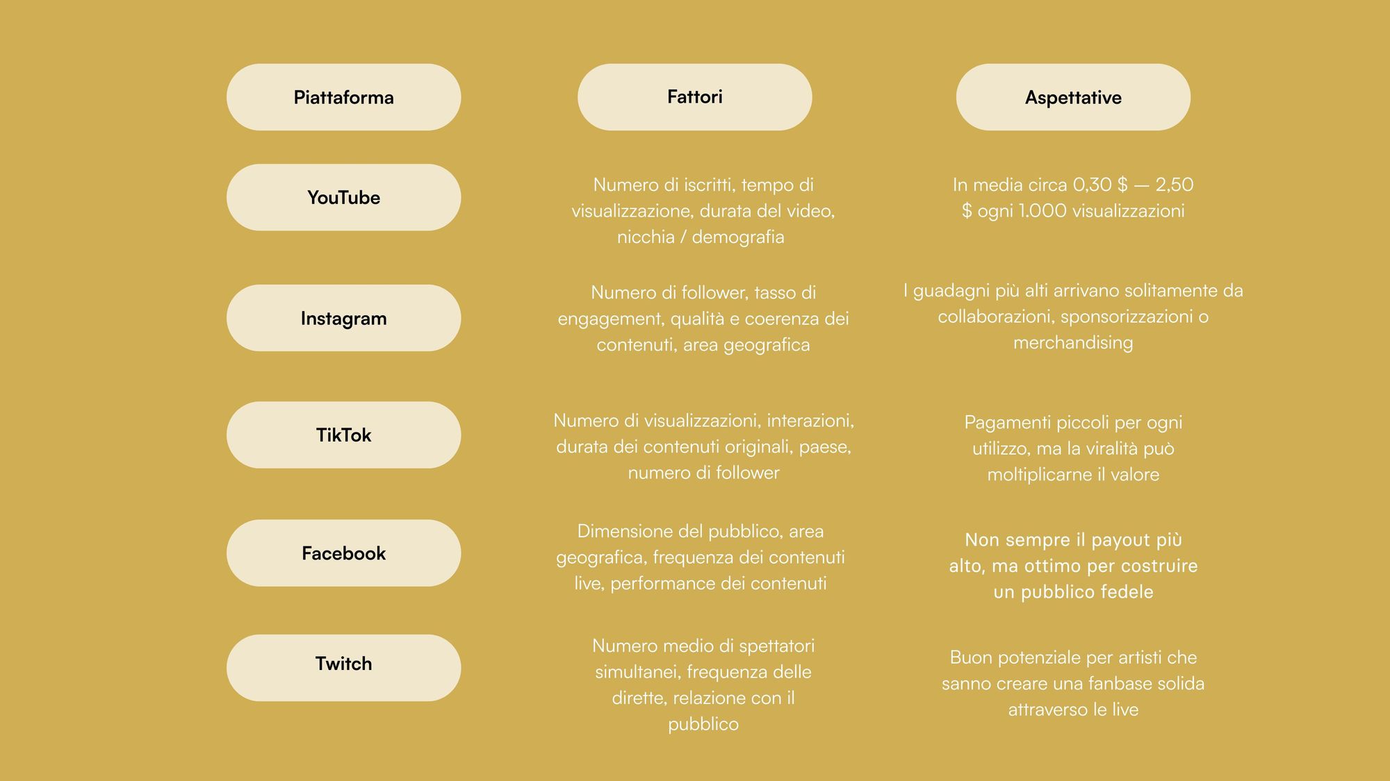 Non tutte le piattaforme sono uguali in termini di monetizzazione. Ognuna ha regole, algoritmi e modelli di pagamento diversi.